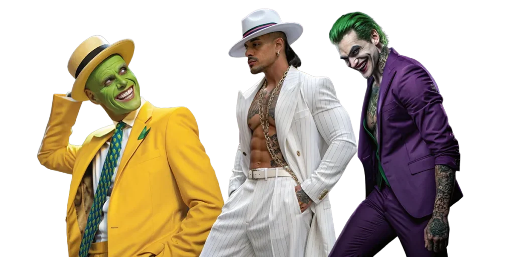 ⛓️ 50 Shades / Dom – 50 Sombras / Amo Dominante | 🎶 Magic Mike – Estilo Magic Mike | 🎅 Sexy Santa – Santa Sexy | 🎭 The Mask (Jim Carrey) – La Máscara (Jim Carrey) | 💘 Latin Lover – Amante Latino | 🎩 Pachuco – Pachuco | 🏨 Hotel Security – Seguridad del Hotel | 🚑 EMT – Paramédico / Urgencias | 🦸 Superhero (Batman, Spiderman) – Superhéroe | 🦹 Villain (Joker, Bane) – Villano | 🧛 Vampire – Vampiro | 🐺 Werewolf – Hombre Lobo